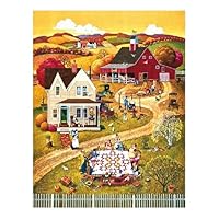 The Quilting Bee, SunsOut 1000+pc Jigsaw Puzzle. Completed Puzzle Size: 27x36 Inches. Puzzle Artist: Bob Pettes. Eco-Friendly - Soy-Based Inks- Recycled Board. Proudly Made In The USA.